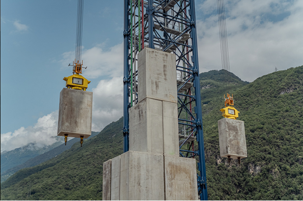 Figure 4: One form of energy storage via gravity uses an automated crane to