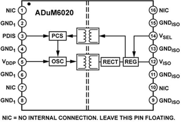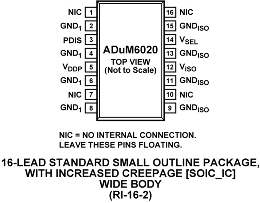 - ADuM6020: 연면 거리가 최소 7.8mm인 16리드 SOIC_W 패키지