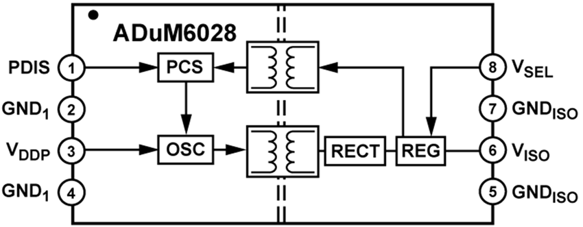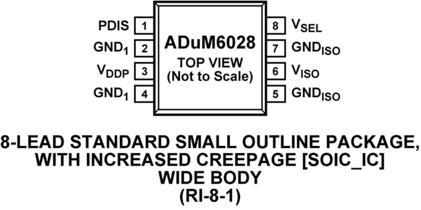 - ADuM6028: 연면 거리가 최소 8.3mm인 8리드 SOIC_W 패키지