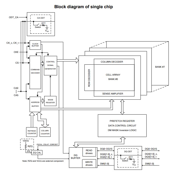 Winbond W66BP6NB/W66CP2NQ SDRAM LPDDR4는 SDP(Single-Die-Package) 또는 DDP(Dual-Die-Package)와 명령/주소(CA) 버스에서 2개 또는 4개의 클록 아키텍처를 제공합니다. LPDDR4는 CA 버스의 2개 또는 4개 클록 아키텍처를 활용하여 시스템의 입력 핀 수를 줄입니다. 6비트 CA 버스에는 명령, 주소 및 뱅크 정보가 포함됩니다. 각 명령은 1, 2 또는 4 클록 주기를 사용하며, 이 동안 명령 정보는 클록의 양의 에지에서 전송됩니다.SDP(Single-Die-Package)는 2Gb(2,147,483,648비트) 밀도의 16Mb x 16DQ x 8뱅크 x 1 채널을 제공합니다. DDP(Dual-Die-Package)는 4Gb(4,294,967,296비트) 밀도의 16Mb x 16DQ x 8뱅크 x 2채널을 제공합니다.